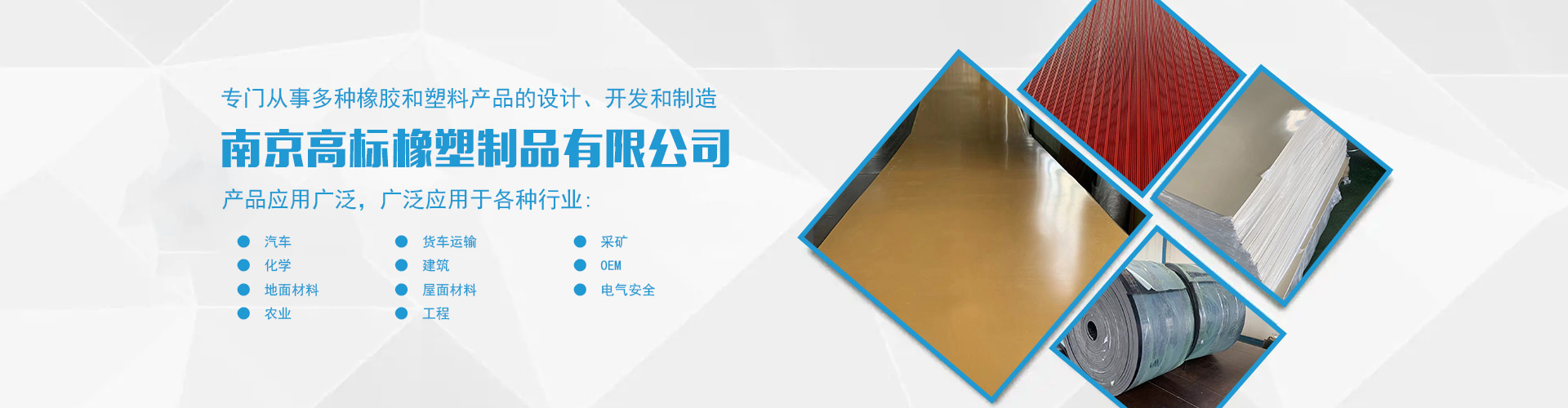南京高標橡塑制品有限公司是一家專業(yè)的橡膠板、橡膠制品和熱塑性塑料產品的制造商。主營產品:三元乙丙橡膠板,丁腈橡膠版,氯丁橡膠板,丁苯橡膠板,丁基橡膠板,天然橡膠板,硅橡膠板,氟橡膠板,絕緣,防靜電,導電橡膠板,夾布,夾金屬網(wǎng)橡膠板,耐酸堿橡膠板,耐油橡膠板,耐磨橡膠板,阻燃橡膠板,阻尼橡膠板,減震橡膠板,防滑橡膠板,橡膠墊片等。 高標橡塑專門從事多種橡膠和塑料產品的設計、開發(fā)和制造。我們的產品應用廣泛。廣泛應用于各種行業(yè),包括:汽車,貨車運輸,采礦,化學,建筑,OEM,地面材料,屋面材料,電氣安全,農業(yè),工程等。 高標橡塑的客戶服務于許多行業(yè),包括墊片切割、分銷商、工業(yè)用品零售商和批發(fā)商。自